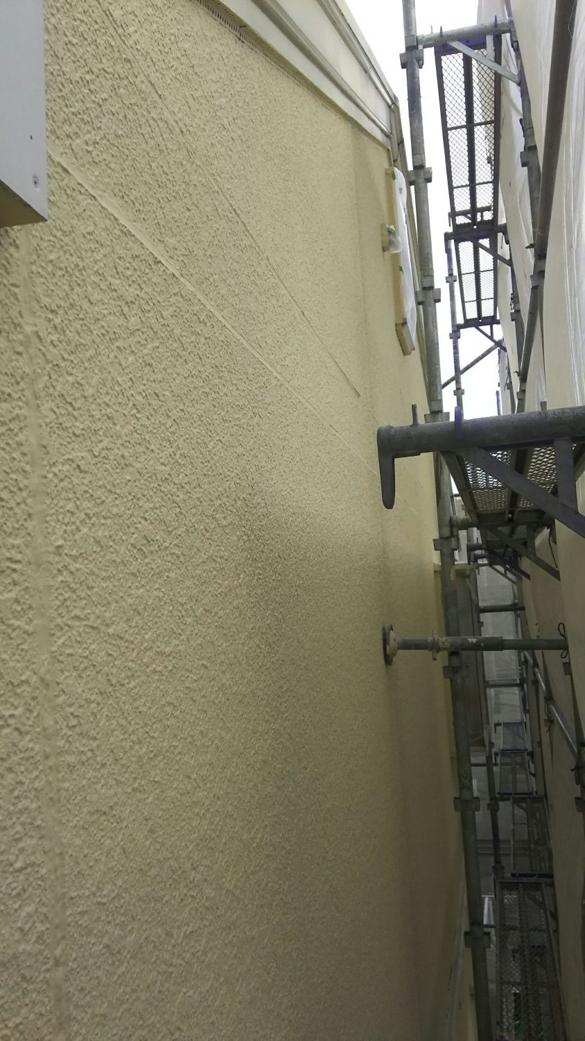 駐車場側、中塗りまで行きました