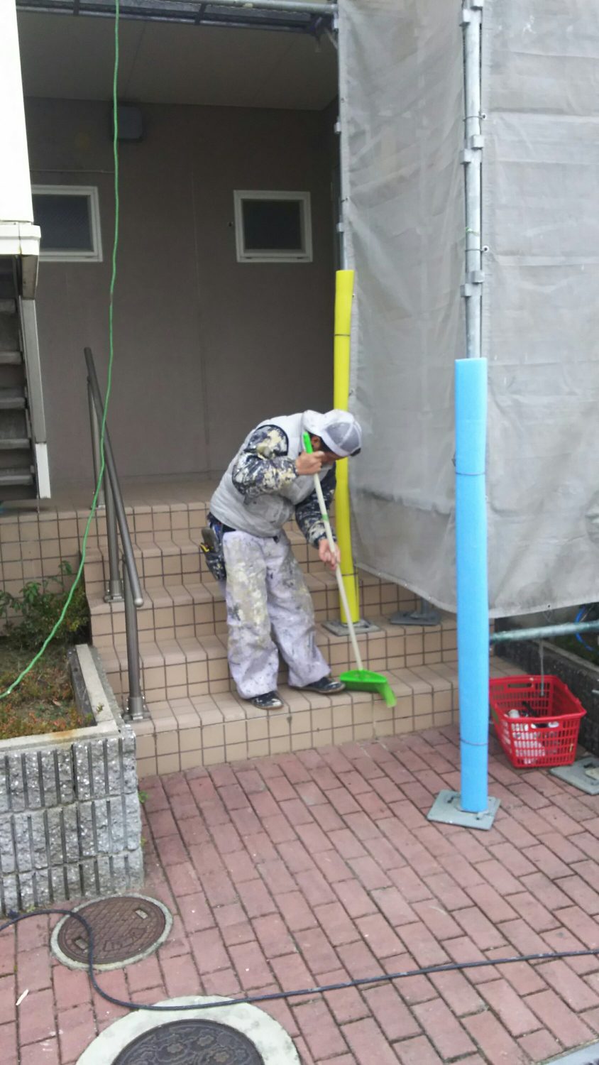 入居者様の邪魔にならないように、掃除して養生してます🎵