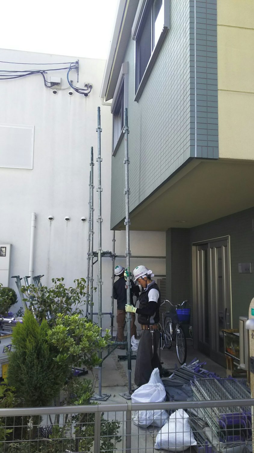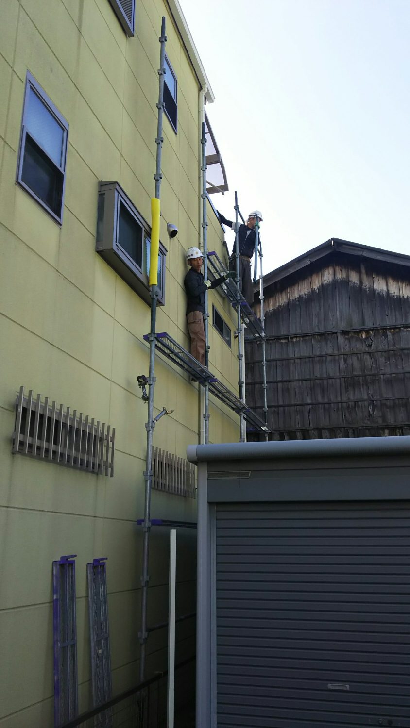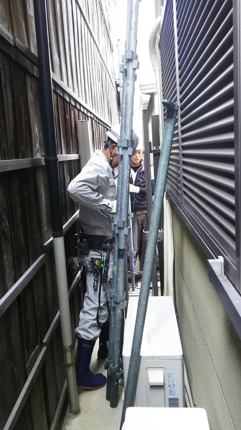 今日は、足場組みたてです!まずは狭いところから頑張って行きます❗慎重に❗